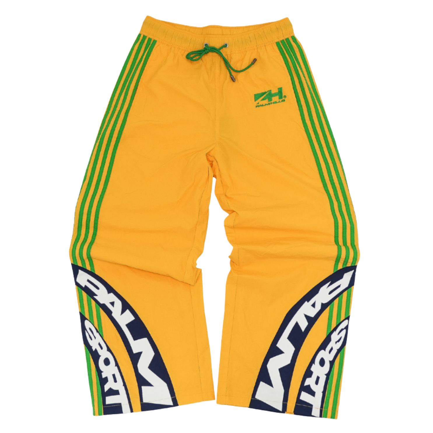 • Drawstring waistband featuring Palm Hills engraved metal tips